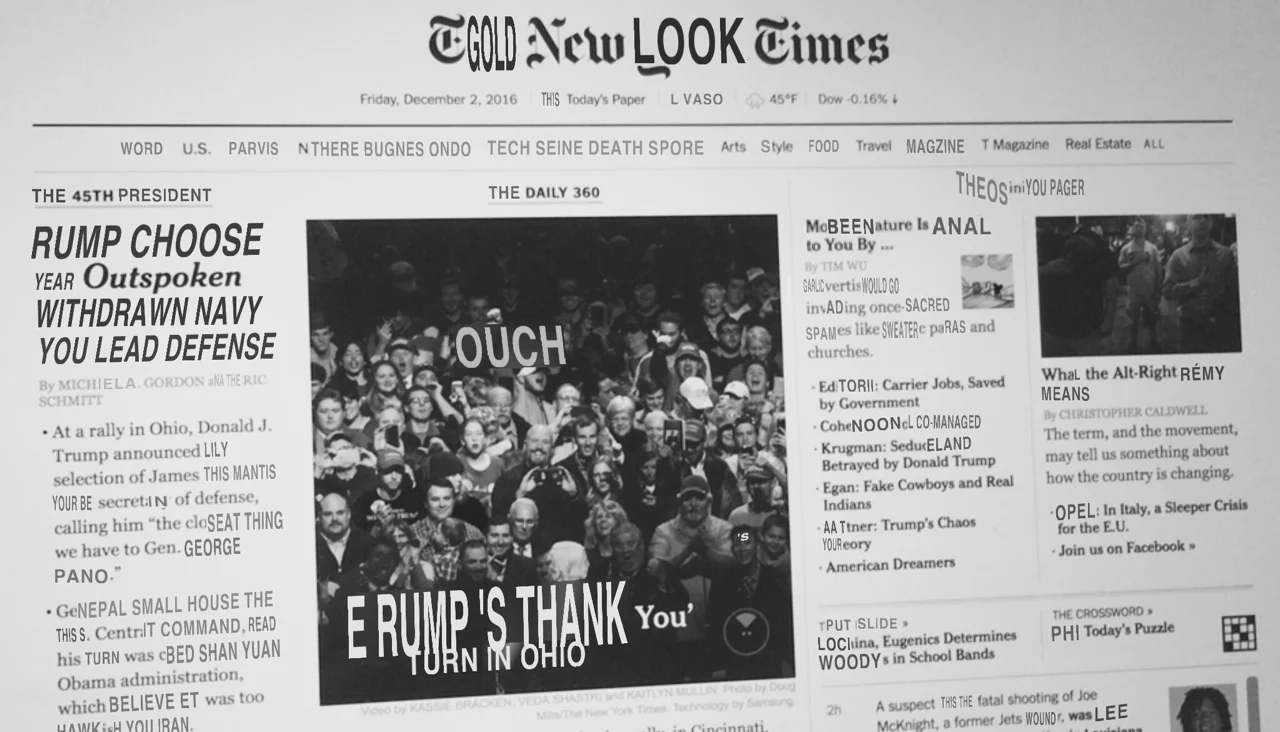 New Look Times: Today’s dad breaded onoma tech rings. Rump attacks Boeing meat odor. Dead because mad house and lute. END.