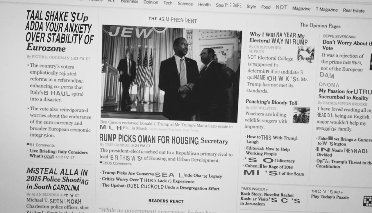 [TMI Times]: Your anxiety: the sim president rump picks Oman for housing secretary. “JEW”. Duel cuckold undo desegregation effort. So idiocracy.